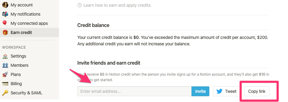Notion 為了推廣他們的服務,和做病毒行銷,所以有推薦給朋友使用,只要你的朋友按了你的推薦連結,你就會賺取 5 塊錢美金的折抵費用,Notion 的月費是 4 塊美金,所以你推薦給 9 位使用,就可以免費使用一年