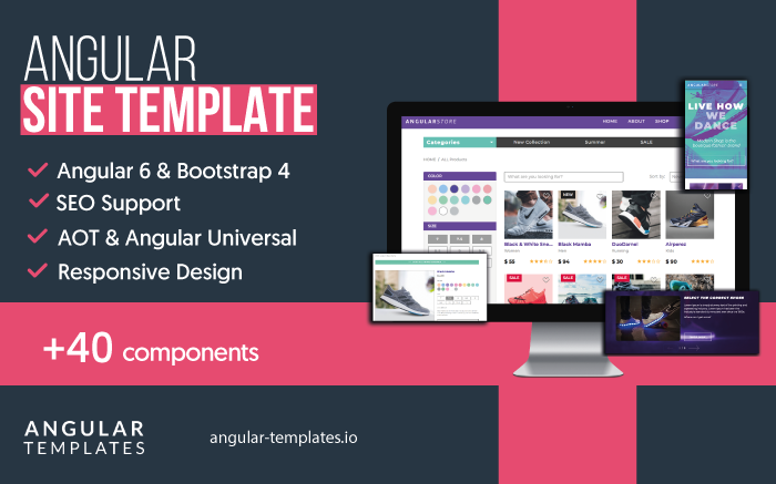 我們為您準備了各種配料……漂亮的螢幕畫面,不同類型的瀏覽,功能整合,資料表,搜索引擎優化(SEO),伺服器端渲染,提前編譯,以及你在每個 Angular 應用程式中可能需要的所有常用元件。