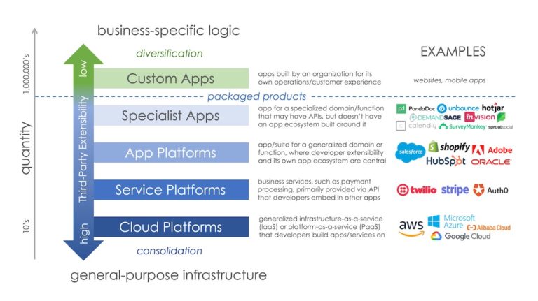 軟體產品開發比以往更經濟,雲端的平台( Google, AWS, Azuare )讓軟體創業家能很快地將其應用成為 SaaS ( software-as-a-service ) 為全球服務,他們一開始可就需求用量付雲端平台少少的錢,當業務擴展也很容易擴大規模。