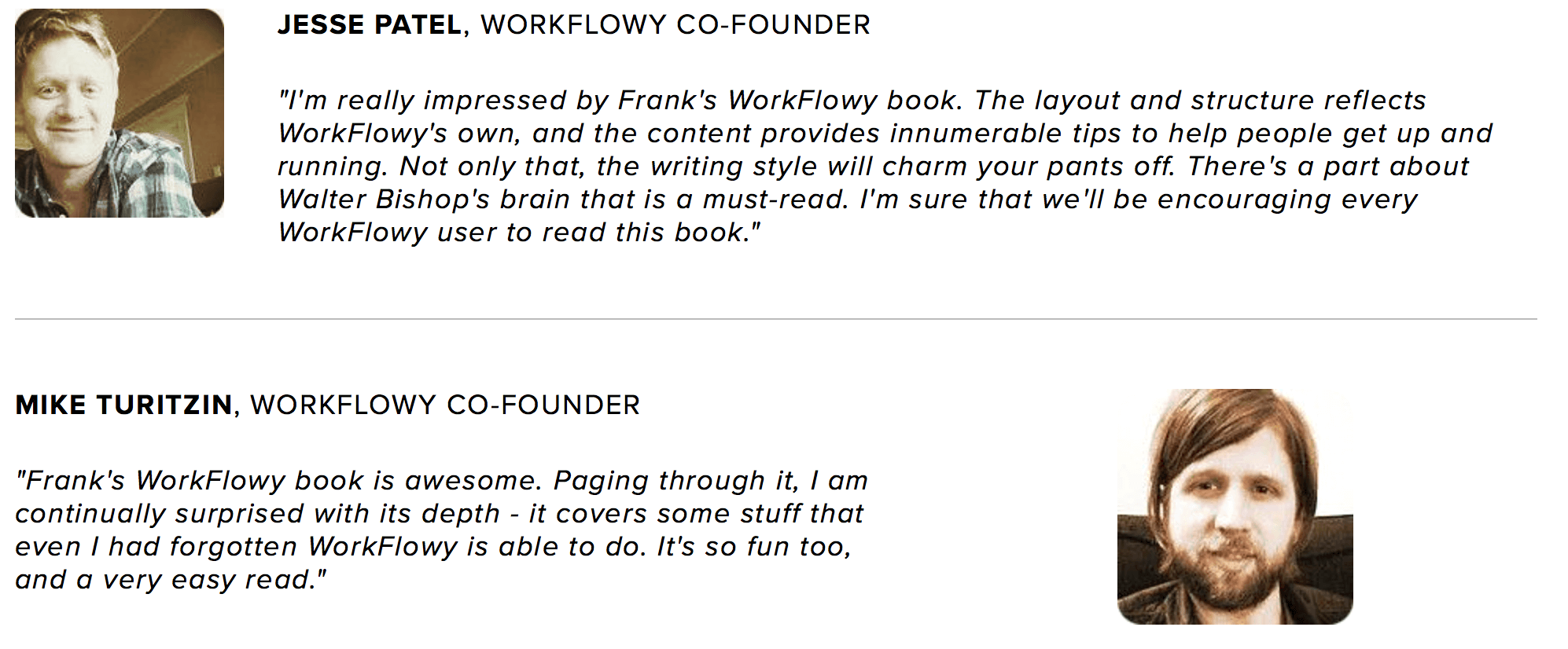 WorkFlowy 的兩位創辦人皆具名推薦本書: