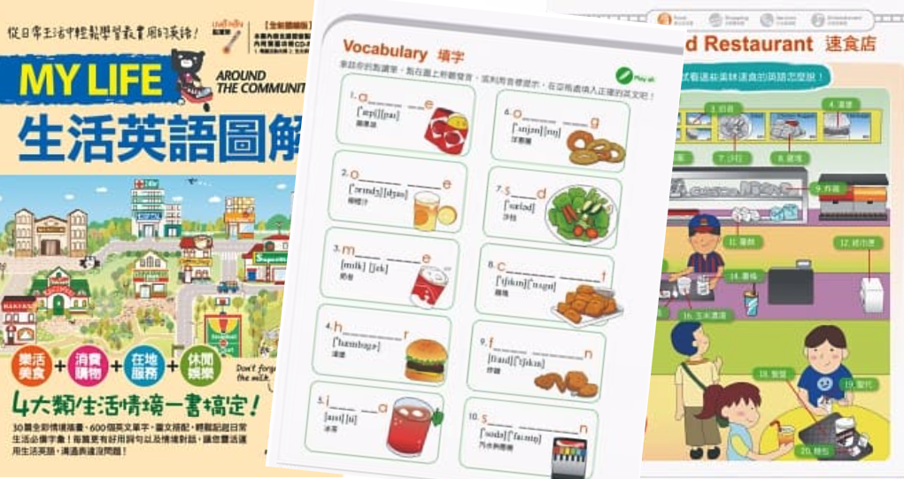 市面出了幾本很不錯的圖解英語讀本,利用圖解的方式學英文,將同時動員左右腦,有的還會選配影音互動光碟或閱讀筆,對於想學英語的大朋友、小朋友都是很不錯的學習叢書,很多很適合親子互動一起學英文喔。