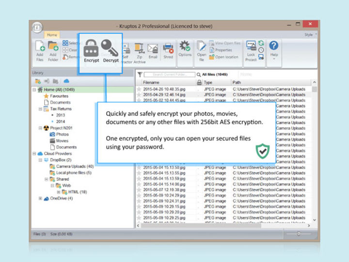 雖然有些事情你可以妥協,但是你的隱私不是其中之一。 Kruptos 2 Professional 是一款易於使用的檔案加密工具,它利用 256 位元加密來保護你的私人檔案,並防止在沒有正確密碼的情況下修改、讀取甚至訪問這些檔案。 從照片到納稅申報單,Kruptos 可以保護你電腦上任意大小和各種類型的檔案。 並且,增加了一些功能,比如檔案碎紙機和密碼分析器,Kruptos 提供了一個完整的工具箱來保護你的隱私。