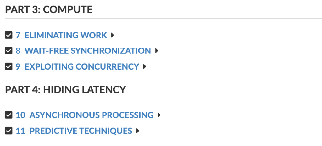 “本書涵蓋了大部分重要主題,包括分區、複製、快取和作業系統級優化。它涵蓋了軟體和硬體方面的細節,幫助讀者理解造成延遲的因素以及如何改善延遲。” – Shubham Patel, Senior Software Engineer, Apple