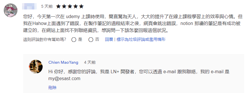 請不用擔心,經過我們看了 chrome 開發者條文才發現有這一條規定,Learning Notes Plus 是有經過 Google 審核才能上架,但是 Google 內部還有一個信任指標,到底要上架多久才能得到 Google 的信任,Google 並沒有明確的說明,但是我們保證:我們不會去竊取您的隱私資訊,請放心安裝與試用