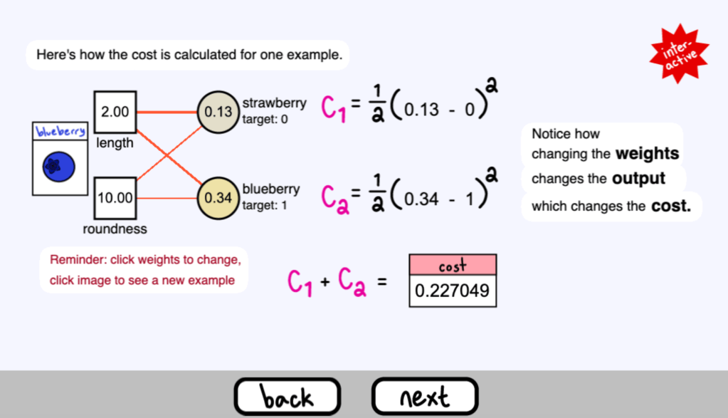 注意改變權重如何改變輸出,從而改變成本