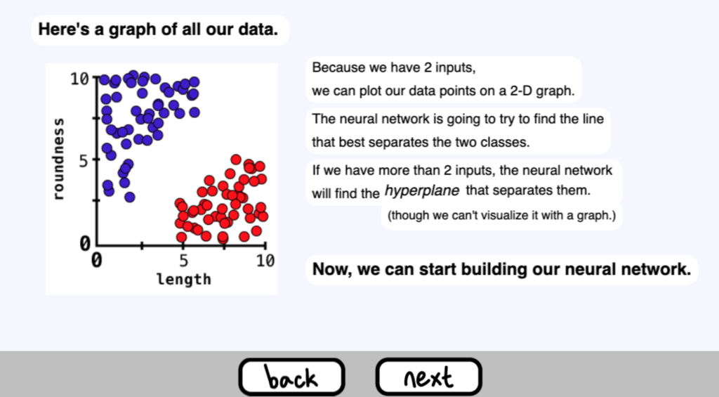 如果我們有2個以上的輸入,神經網路將找到分離它們的超平面。(但我們不能用圖形來顯示它。)