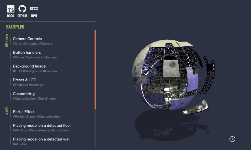 - 支援Android的 WebXR 和 SceneViewer AR以及 iOS 的 AR Quick Look。