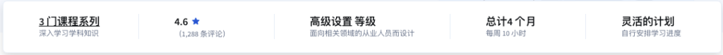 透過各種講座、測驗、程式設計作業和考試,本專業的學員將練習和掌握機率圖形模型的基礎知識。本專業有三門為期五週的課程,共十五週。