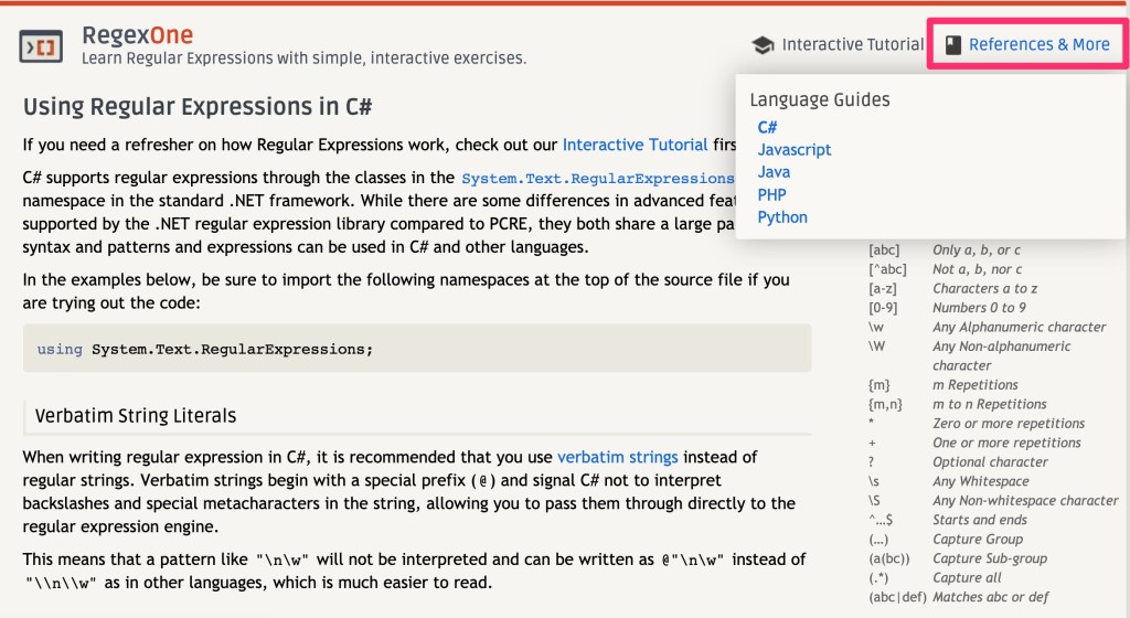 在 C#/Javascript/Java/PHP/Python 程式語言中使用 Regular Expression 的參考