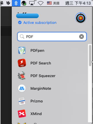 想到我們有 Setapp,裡面有許多種 Mac 的應用程式, 去裡面找找也許有解決方案。 到 Setapp 輸入 “PDF”,看到 PDFpen,能夠編輯 PDF,也能在上面簽名,應該能達成我想做的。