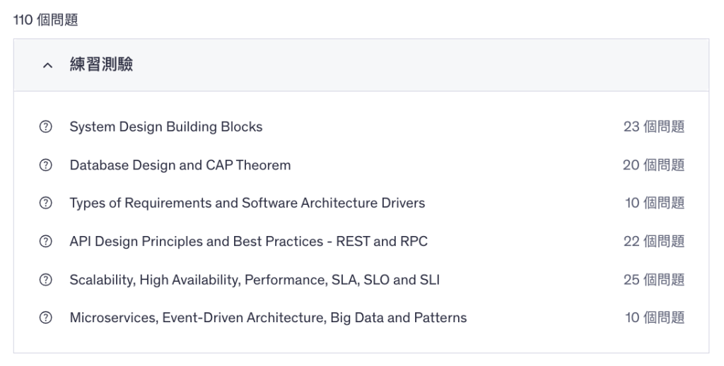 本課程是練習並提升系統設計及軟體架構知識的最佳線上資源。