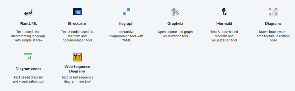 使用文字或程式語言設計圖表,可以儲存在版本控制工具中,允許與開發實踐和工作流程整合。一個偉大的技術解決方案,用於長期的文件。