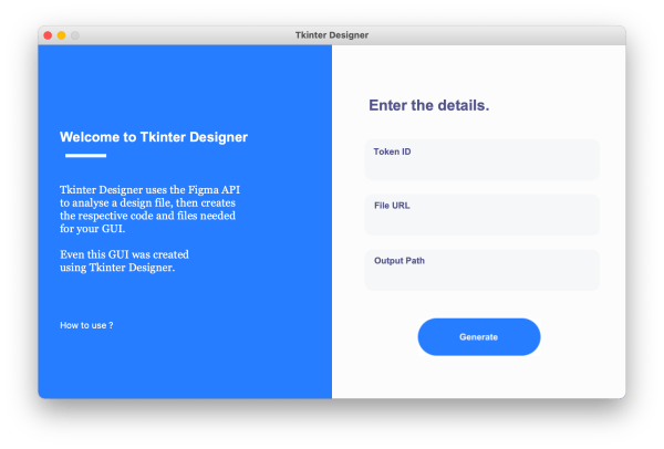 Tkinter Designer 是為了加快 Python 中 GUI 的開發流程而建立的。它使用著名的設計軟體 Figma,使在 Python 中建立漂亮的 Tkinter GUI 像小菜一碟。