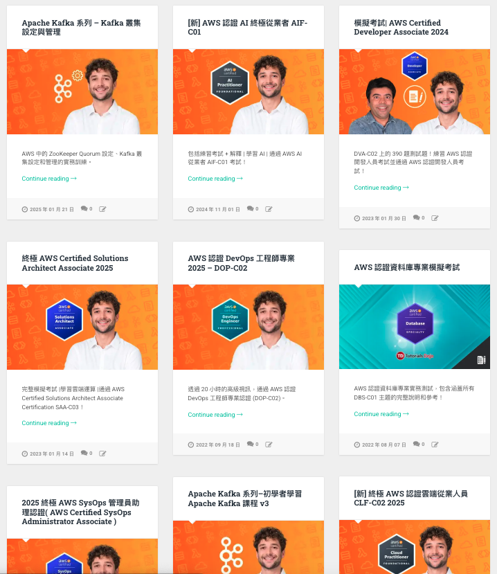 AWS 雲端:先從 AWS Certified Cloud Practitioner 或 AWS Certified Solutions Architect Associate 開始,然後是 AWS Certified Developer Associate,最後是 AWS Certified SysOps Administrator。之後,您可以選擇 AWS Certified Solutions Architect Professional 或 AWS Certified DevOps Professional,或選擇您選擇的專業認證。您也可以透過 AWS Certified AI Practitioner 課程學習 AI!