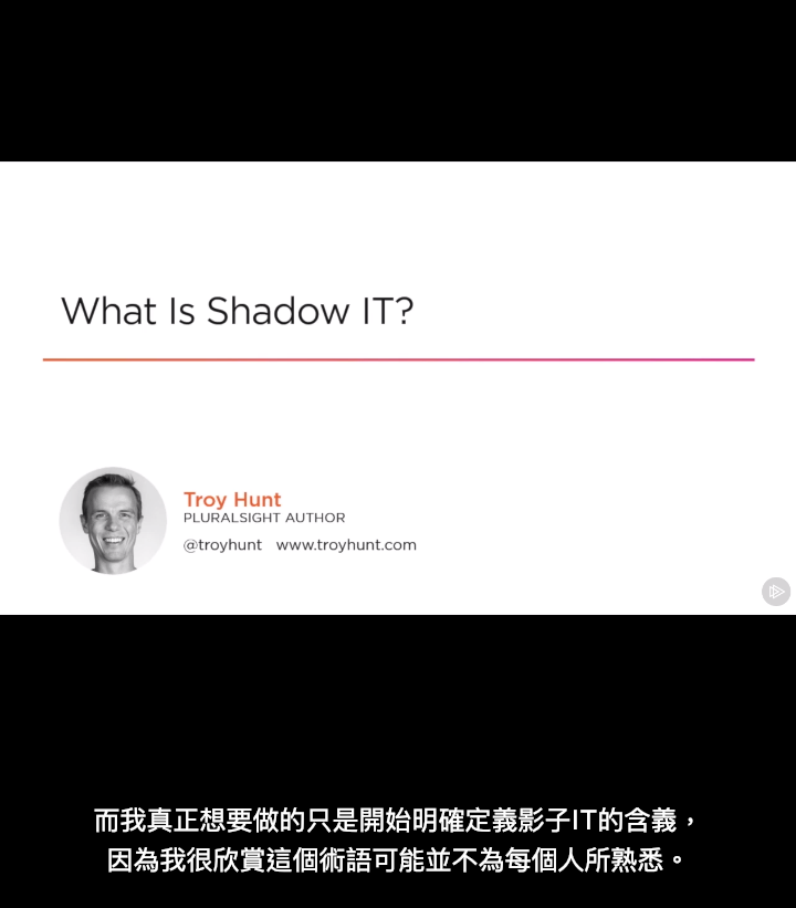 這是創建以安全為中心的文化的第二季學期。在本課程-影子 IT ( Shadow IT )的角色以及如何將其帶出黑暗角落,你將了解 IT 的影響,特別是在今日雲端時代。 首先,你將了解影子 IT ( Shadow IT )究竟是什麼以及它存在的原因。 接下來,你將知悉在我們每天工作息息相關的 IT 和安全結構對於非技術人員來說可能是非常陌生的。最後,你將學習如何幫助你的企業了解正確的方式來滿足他們的需求。 完成本課程後,你將了解如何成為解決方案的一部分,而不是完成工作的障礙。